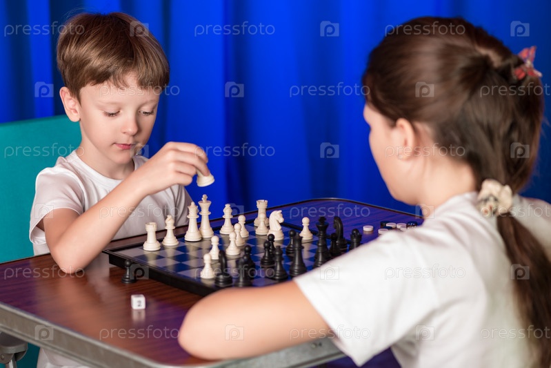 Дети играют в настольную игру под названием шахматы