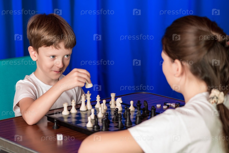 Дети играют в настольную игру под названием шахматы
