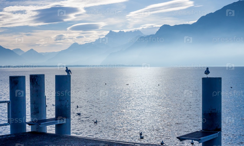 Прекрасный вид на Женевское озеро и Альпы
