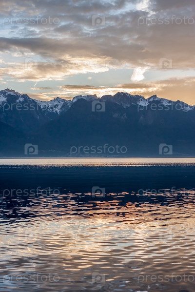 Прекрасный вид на Женевское озеро на закате