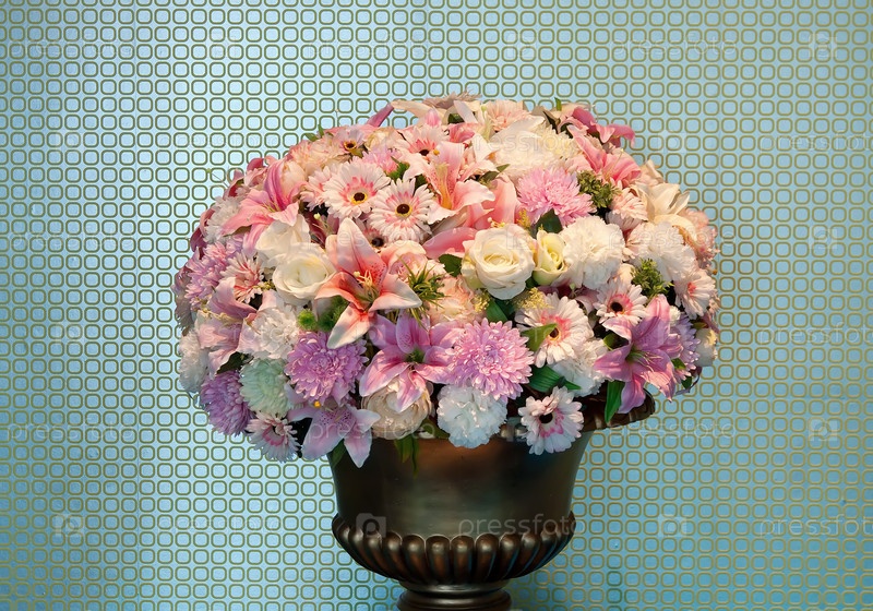 Букет цветов в вазе из латуни