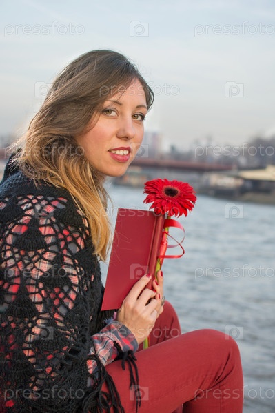 Девушка с книгой на берегу реки