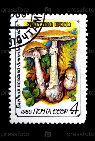 Советская марка 1986 года с бледной поганкой, amanita phalloides