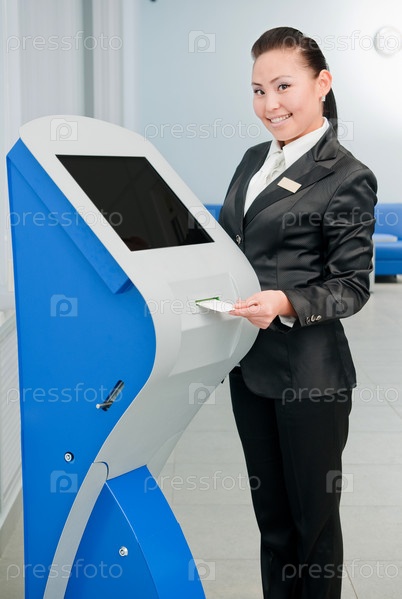 Банковский работник с банкоматом