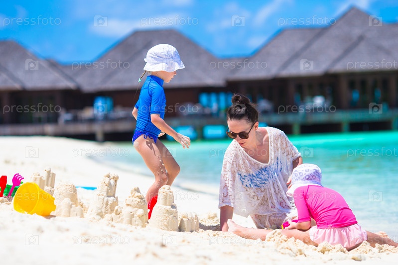 Мать с дочками на пляже
