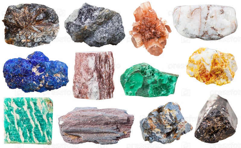 Коллекция различных минеральных камней
