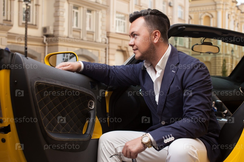 Стильный мужчина в спортивном автомобиле