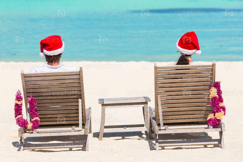 Молодая пара встречает Рождество в гамаках
