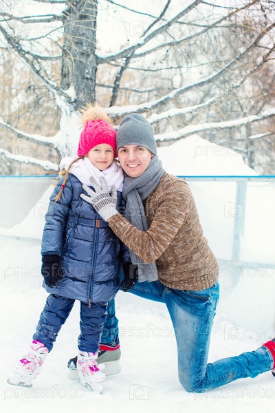 Отец с дочкой в зимнем парке