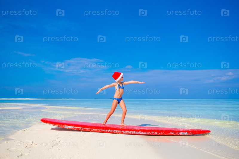 Девочка на доске для серфинга в Рождество