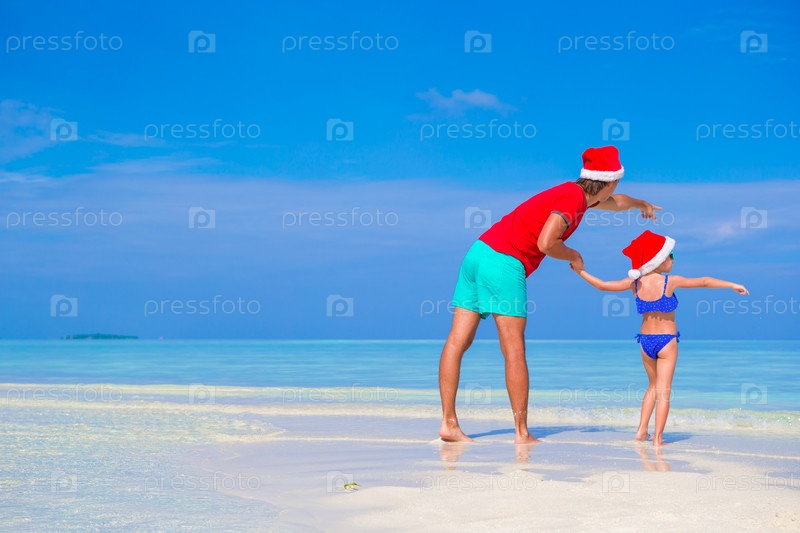 Отец с дочкой встречают Рождество на пляже