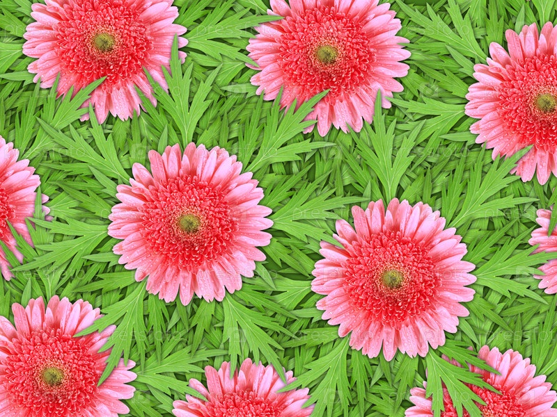Розовые цветы и зеленые листья, фон