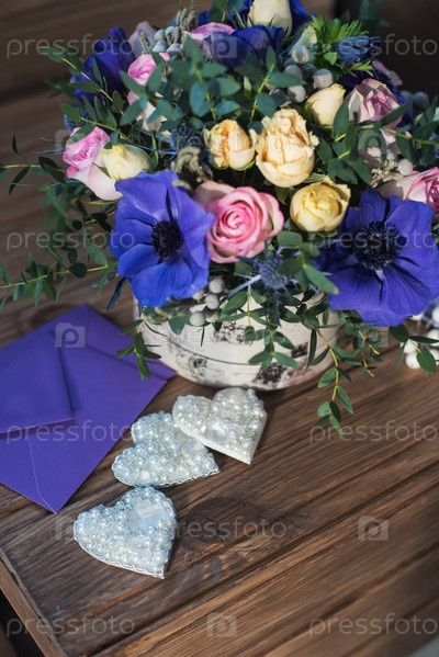 Красивый букет и сердца