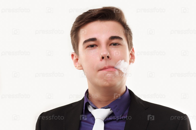 Молодой бизнесмен выдыхает дым