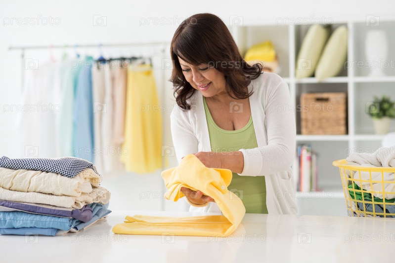 Женщина складывает одежду
