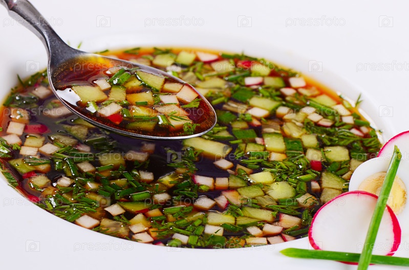 Окрошка из свежих овощей. Холодный суп