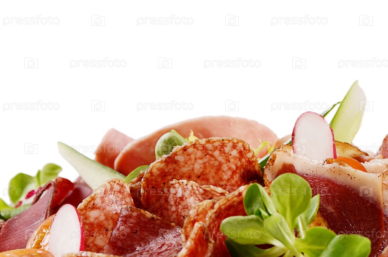 Ассорти итальянских колбас крупным планом как фон