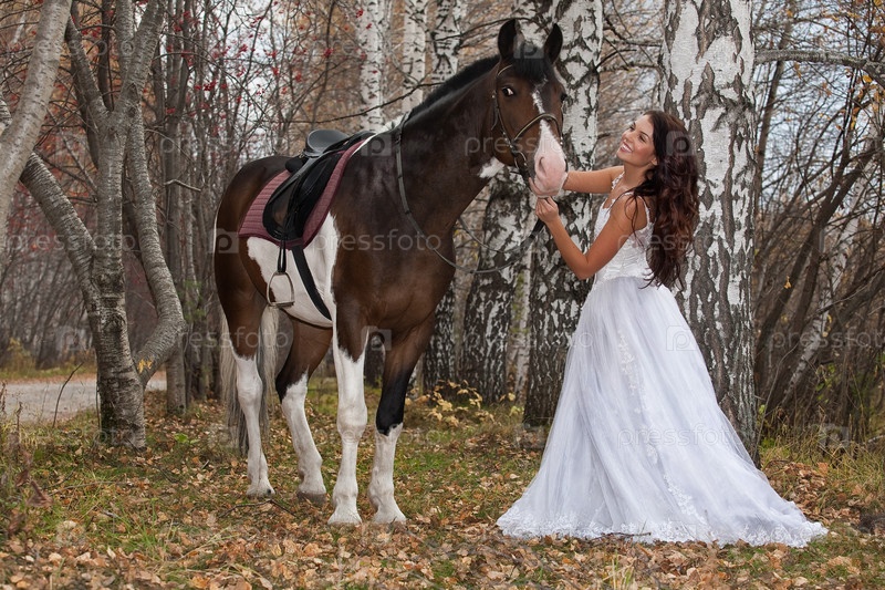 Молодая невеста с лошадью