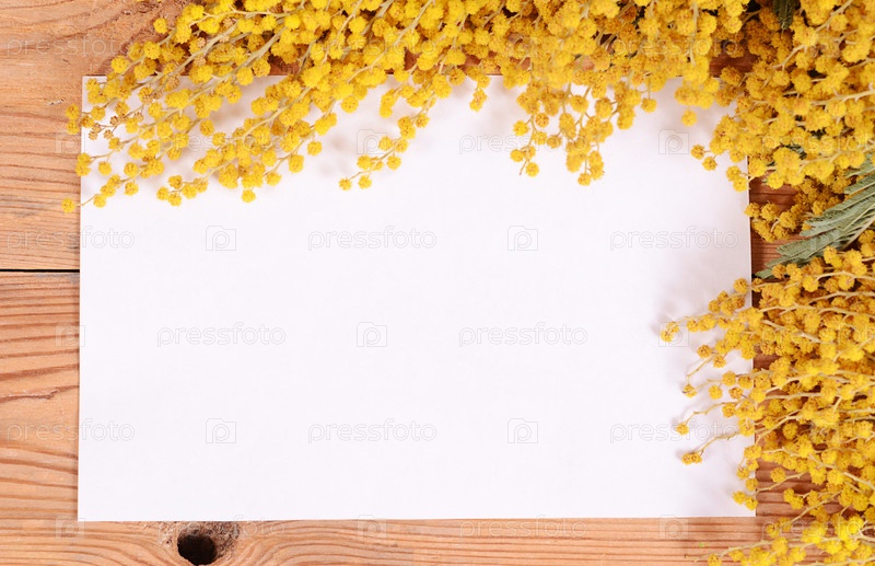 Желтая мимоза на столе