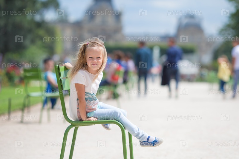 Красивая девочка сидит на скамейке