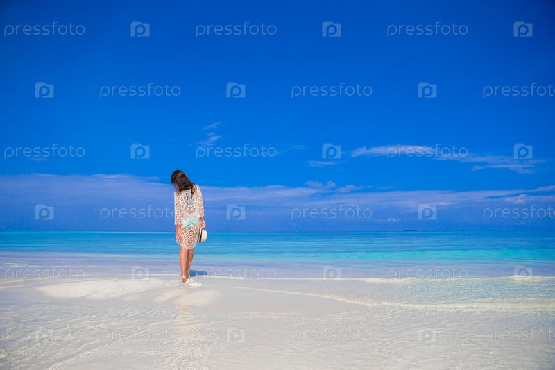 Молодая женщина гуляет по пляжу
