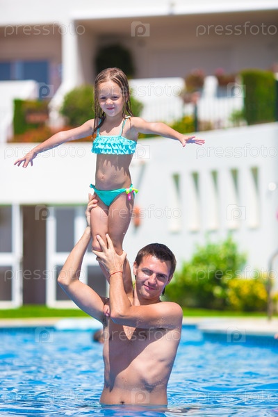 Молодой отец и маленькая дочь в бассейне