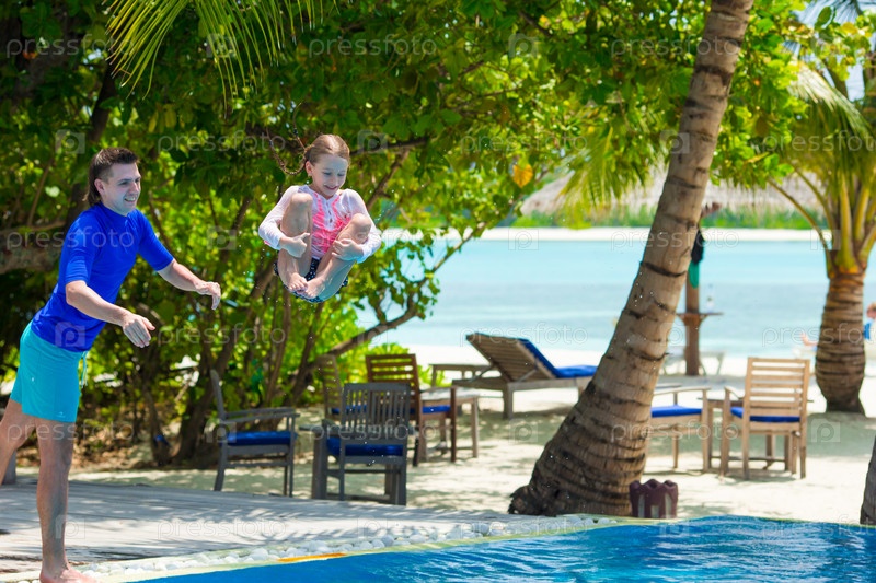 Девочка прыгает в бассейн