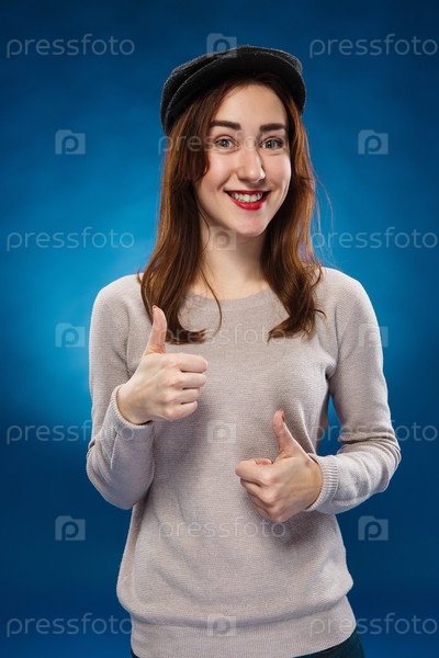 Молодая девушка показывает палец вверх