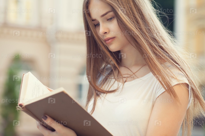 Красивая девушка читает книжку