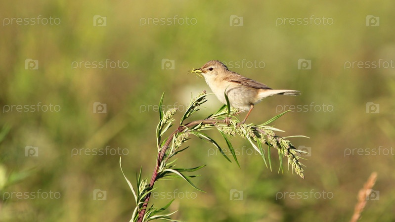 Полевая птица с кузнечиком в клюве