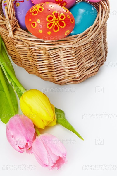 Пасхальные яйца и тюльпаны