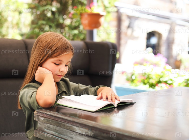 Портрет очаровательной маленькой девочки с книгой