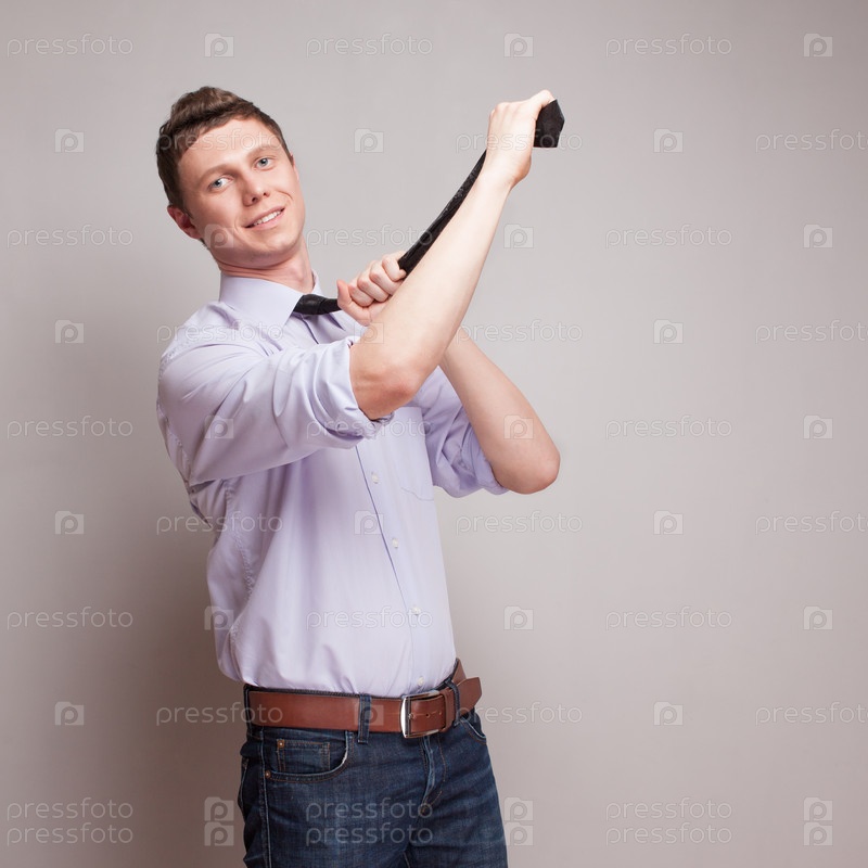 Бизнесмен подтягивает галстук