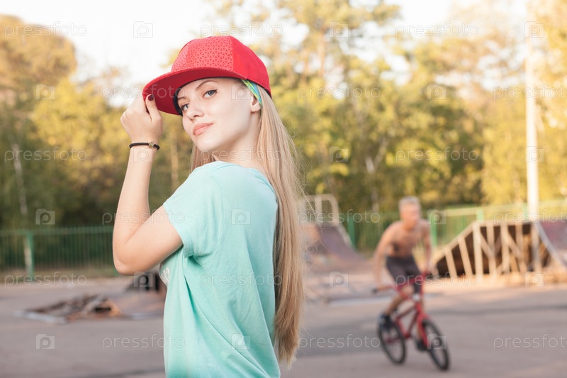 Девушка в скейтпарке