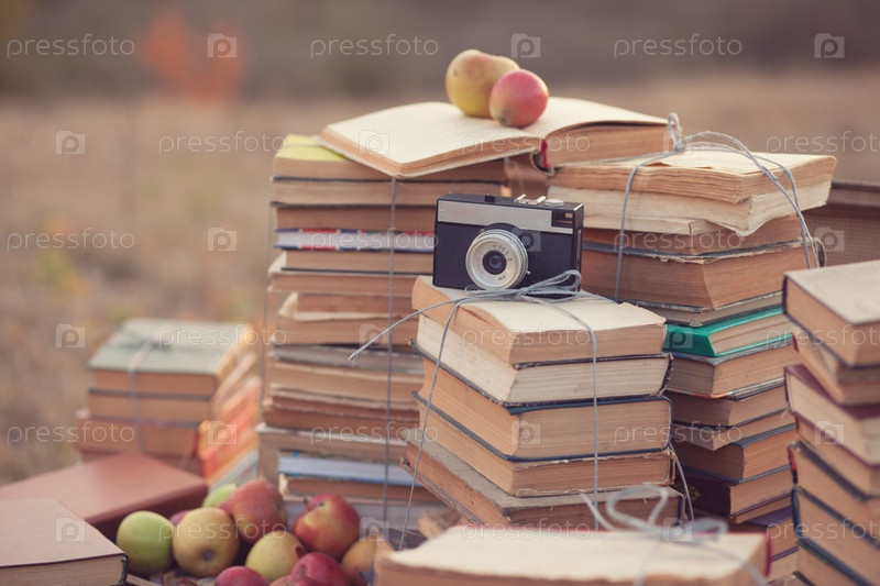 Старый фотоаппарат и книги