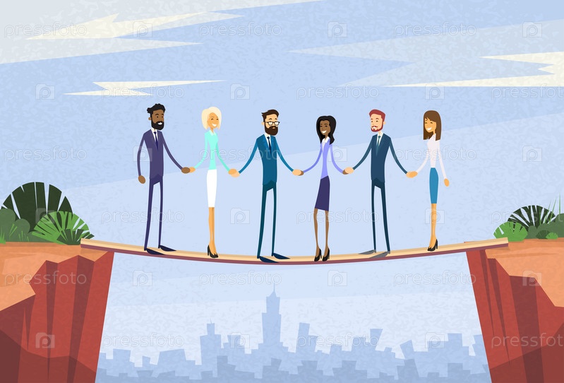 Деловые люди над обрывом, риск