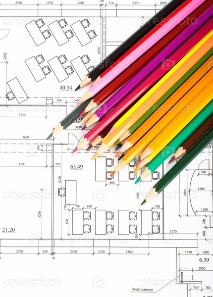 Цветные карандаши на чертежах