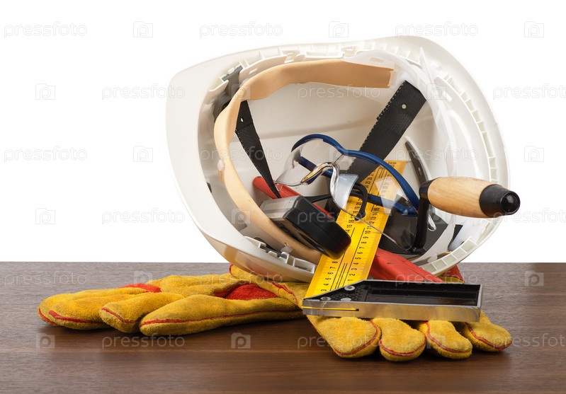 Пластиковый защитный шлем и инструменты