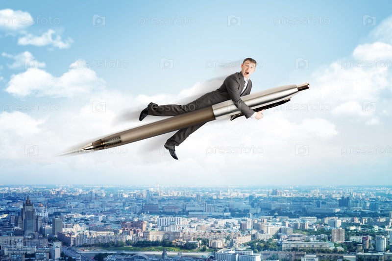 Бизнесмен летит на ручке
