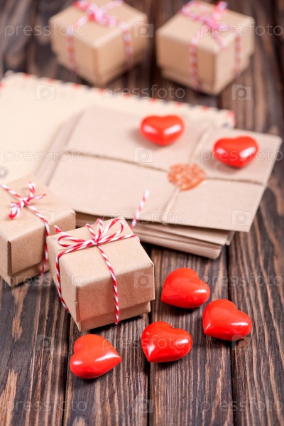 Коробка для подарка и сердца
