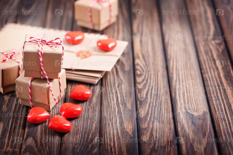 Коробка для подарка и сердца