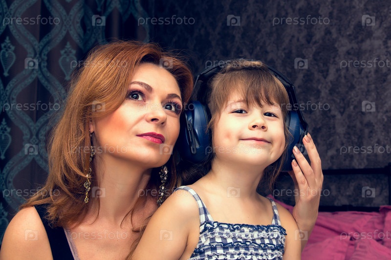 Мать и дочь слушает музыку