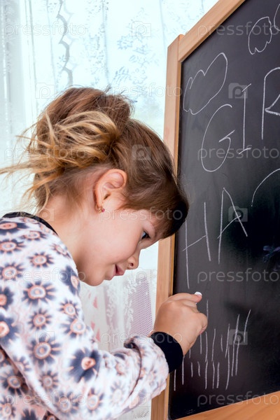 Девочка рисует на доске
