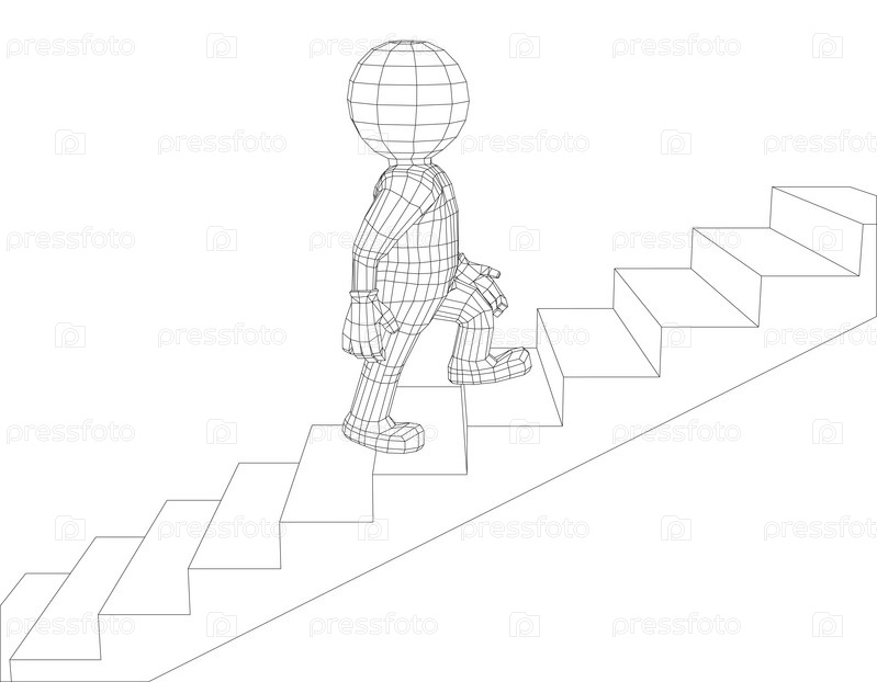 3D-человек поднимается по лестнице