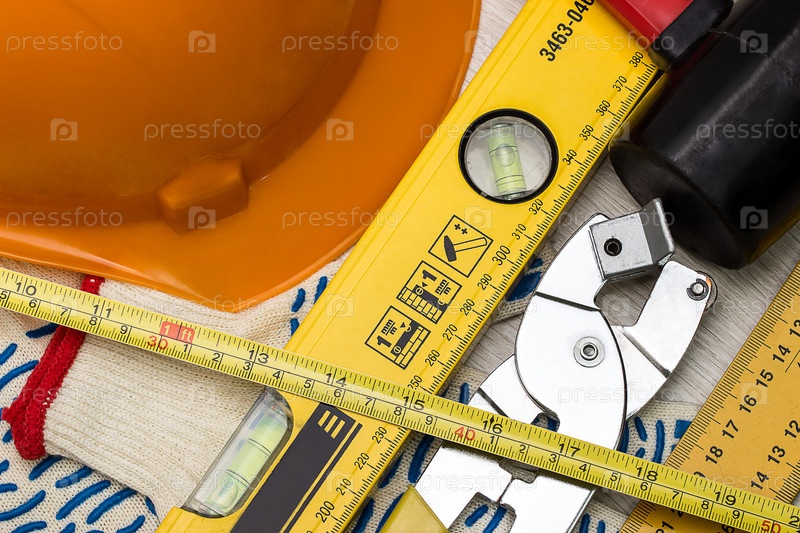 Каска строительная и инструменты