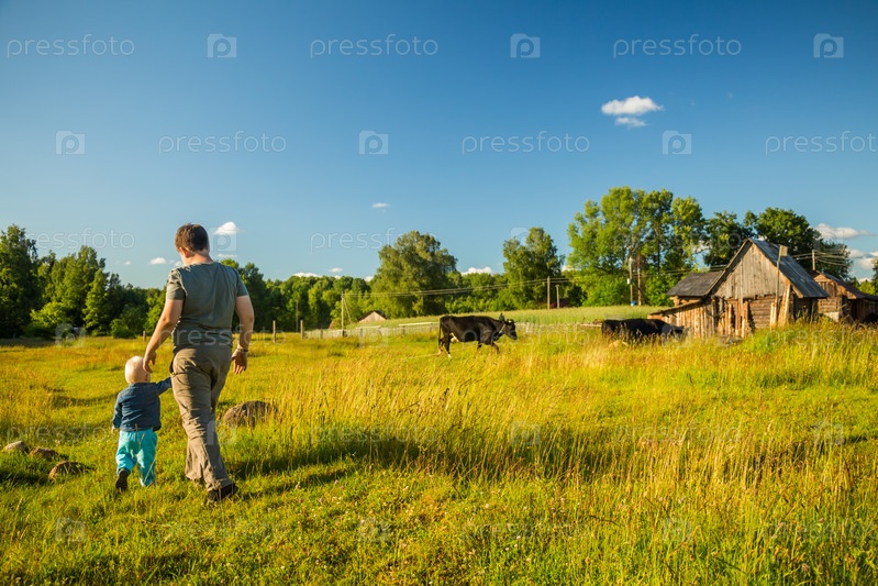 Два мальчика гуляют на лугу
