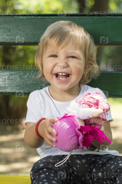 Маленькая девочка на скамейке