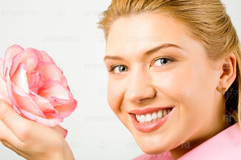 Счастливая девушка с цветком в руке