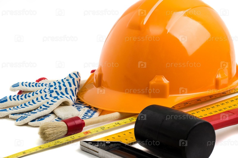 Каска строительная и инструменты