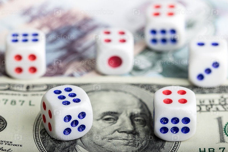 Кости на фоне деньги